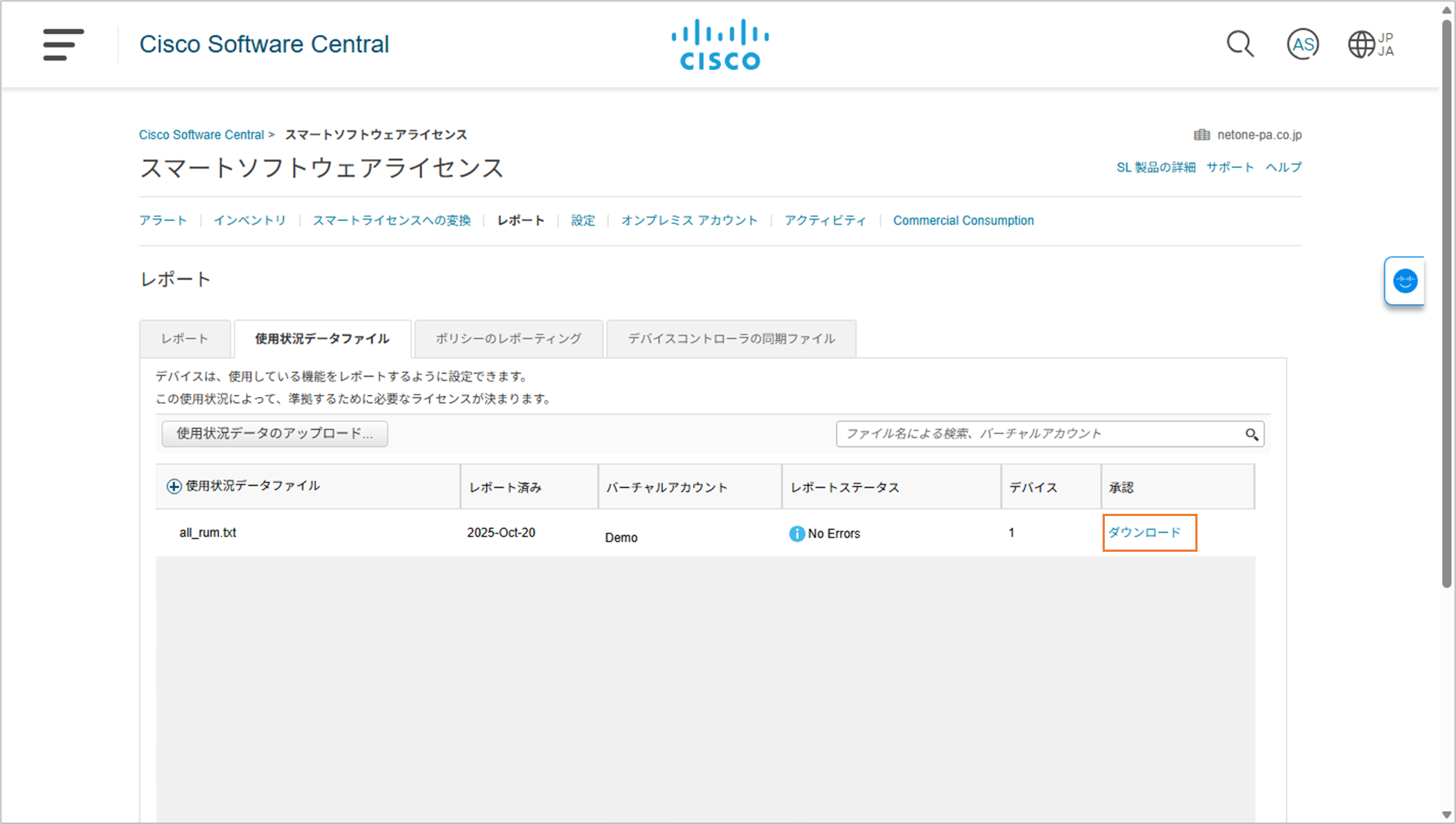 これでレポーティング操作は完了です。CSSMオフライン方式はSmart Licensing Using Policyで新たに導入された方式ですが、比較的簡単な操作でレポーティングを行うことが可能です。