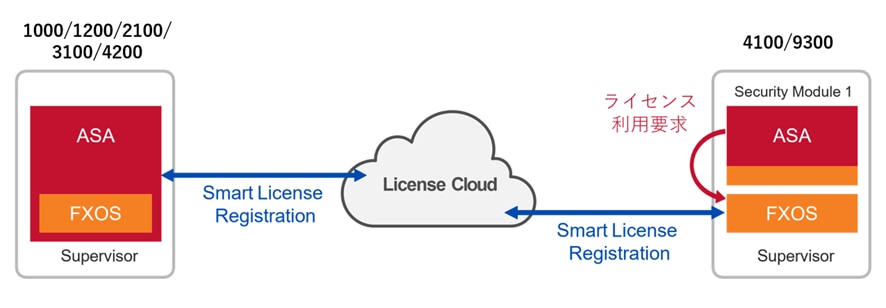 セキュリティアプリケーション(ASA)は、FXOS(※1)にライセンス利用要求します